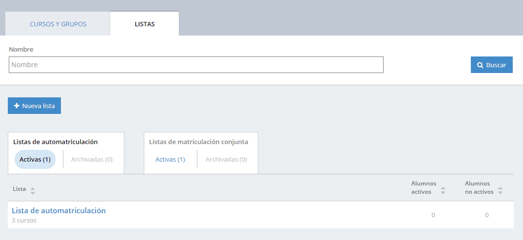 Si tenemos activada esta opción, en la pantalla Cursos nos aparecerá la pestaña de listas: