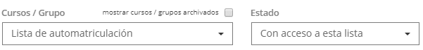 Si tenemos activadas las listas, en el filtro nos aparecerán las listas existentes, en cuyo caso los estados disponibles harán referencia a las posibilidades de esta lista: