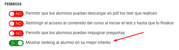 A partir de ahora, será posible mostrar un ranking a los alumnos para que vean su clasificación y puedan comparar sus resultados con los de sus compañeros de manera anónima.