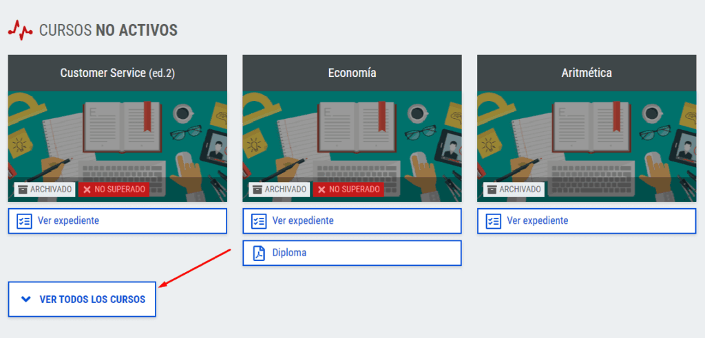 Si bien mantenemos la estructura, ahora los cursos que ya han sido finalizados se han agrupado y solo podrán verse en su totalidad a través de un desplegable: