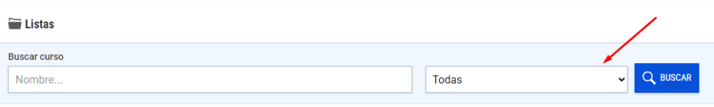 De manera adicional, para facilitar a los alumnos la búsqueda de las listas que tienen disponibles, en caso de tener más de una, hemos habilitado un desplegable con el listado de las distintas listas de automatriculación a las que se les ha dado acceso para que puedan filtrar fácilmente: