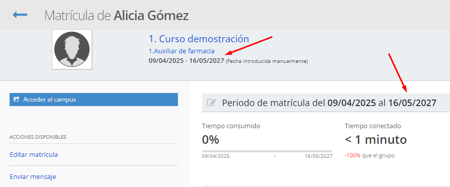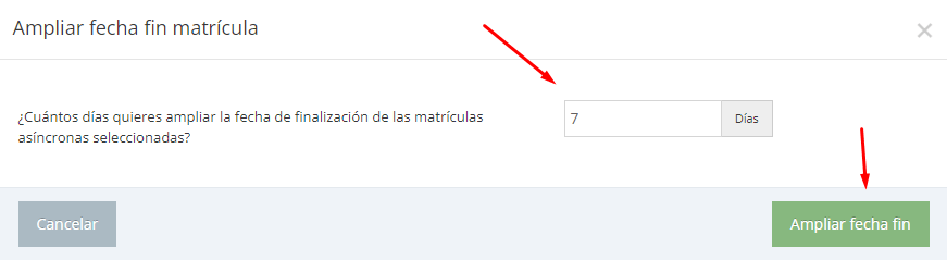En ocasiones, se necesita extender un número determinado de días la fecha final a alguno de los alumnos de estos grupos y así darles más tiempo para finalizar el curso.