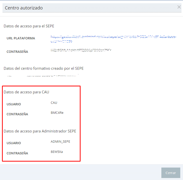 - Usuario administrador SEPE:Ā permite el acceso a los cursos en los que hay grupos de alumnos realizando este tipo de formaciones.