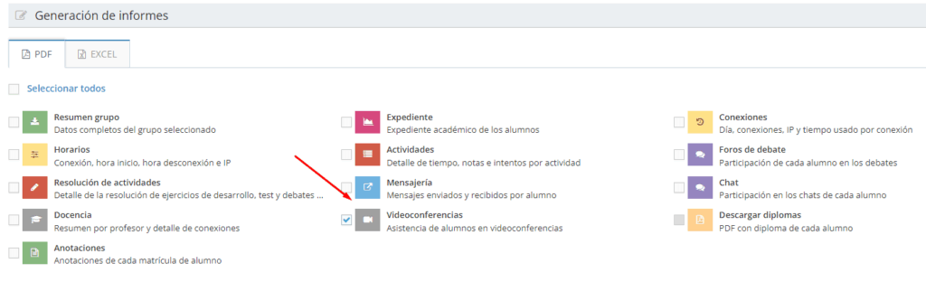A partir de ahora, en el informe de conexión a videoconferencias, además del archivo habitual con la participación de cada uno de los alumnos y del grupo, tenéis disponible una nueva carpeta donde aparece el detalle de las horas de inicio y finalización de cada una de las conexiones de los alumnos a las videoconferencias: