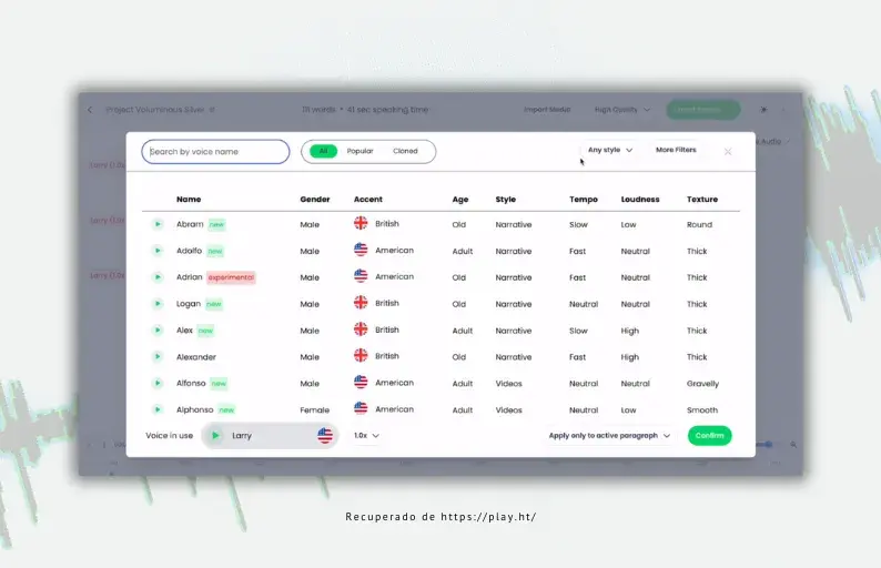 Allo stesso tempo, Play.HT è un generatore vocale AI che offre risultati convincenti nella conversione del testo in parlato.